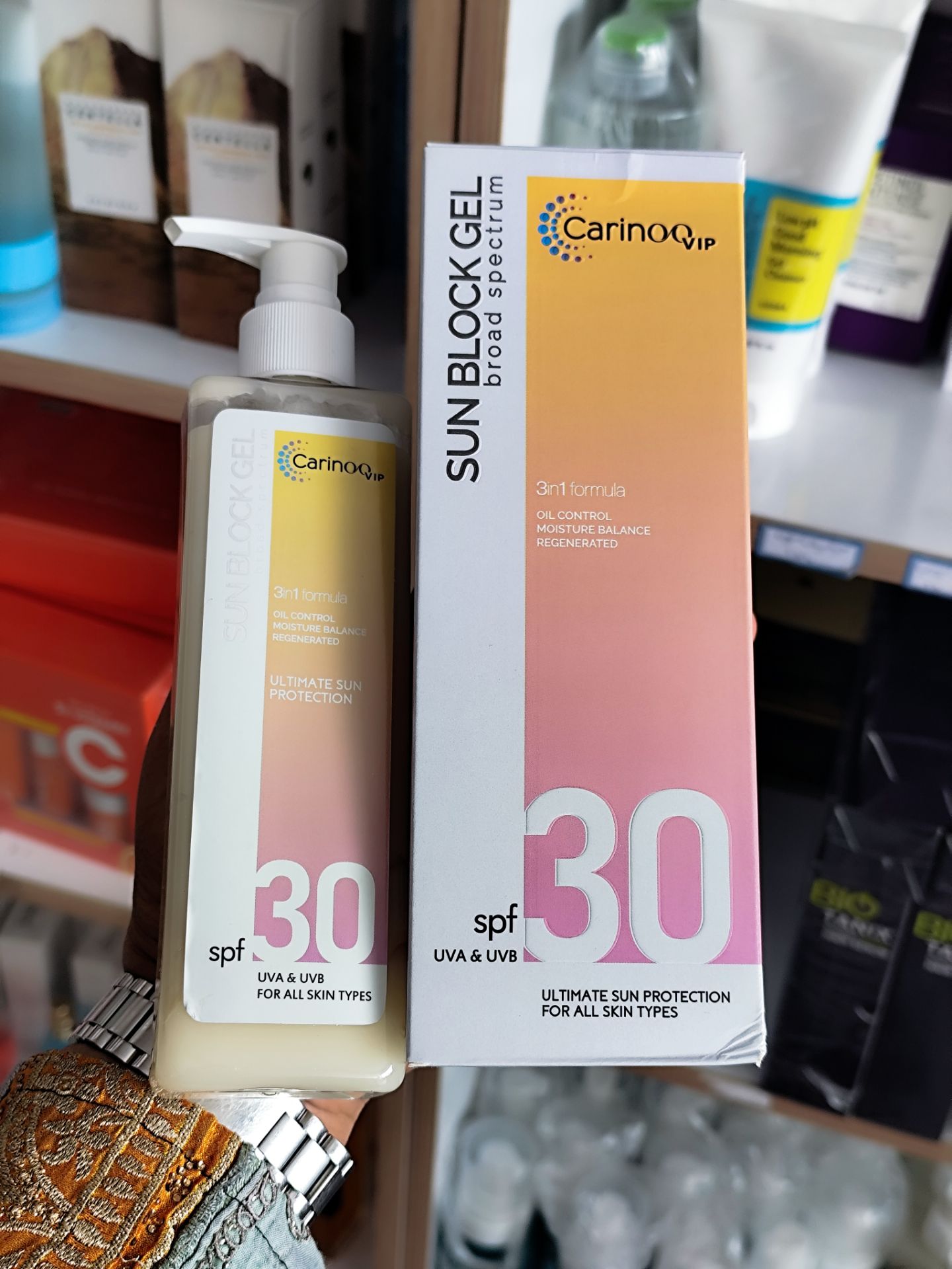 ژل ضد آفتاب کارینو وی آی پی انواع پوست ۲۵۰میل ساخت امارات